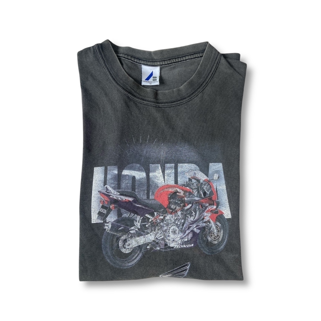 camiseta marca honda , em bom estado de conservação, apresenta leve desgaste de uso.